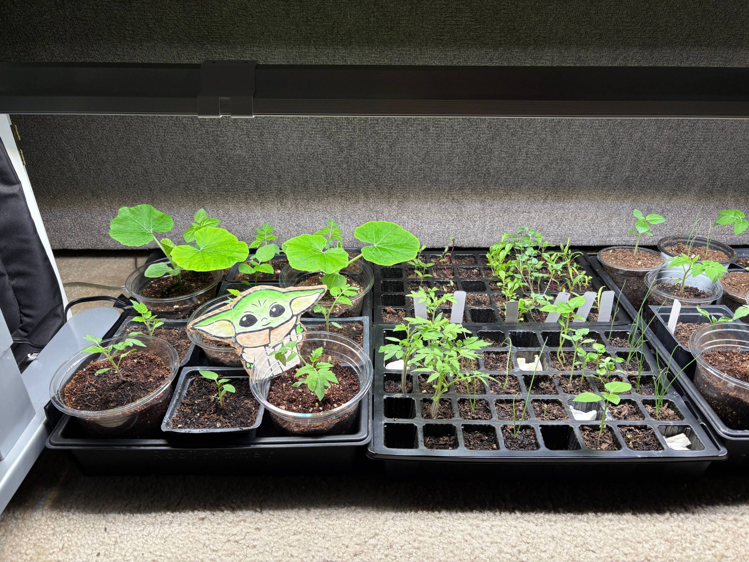 By May, I’d figured out what a proper seed-starting tray was and picked up 1.5-inch cells with a bottom-watering tray and a clear humidity dome. The dome has plenty of critics, and later trays showed me it isn’t strictly necessary. Once seeds germinate, too much humidity can actually cause problems. Damping off is real, and excess moisture makes it more likely.