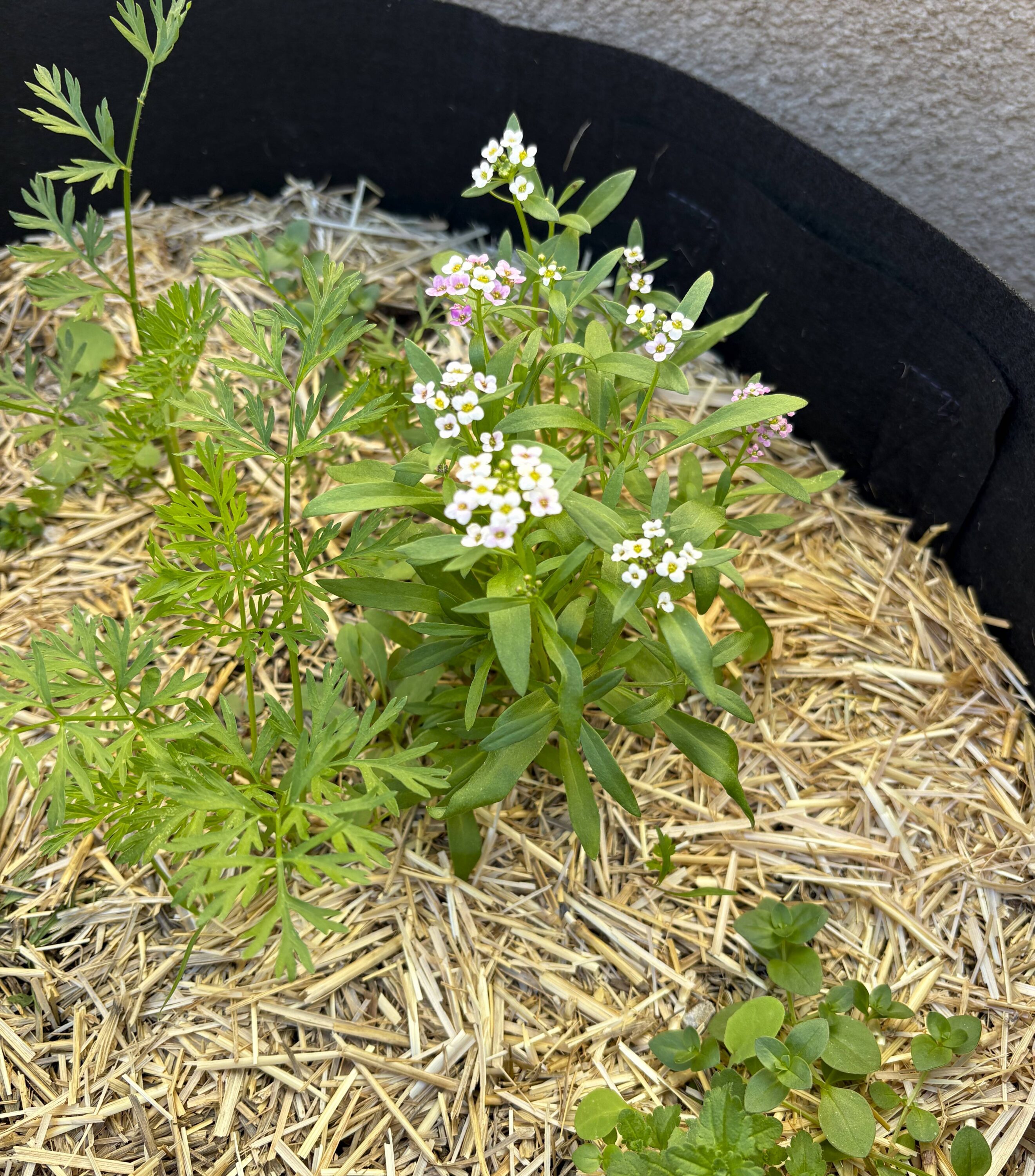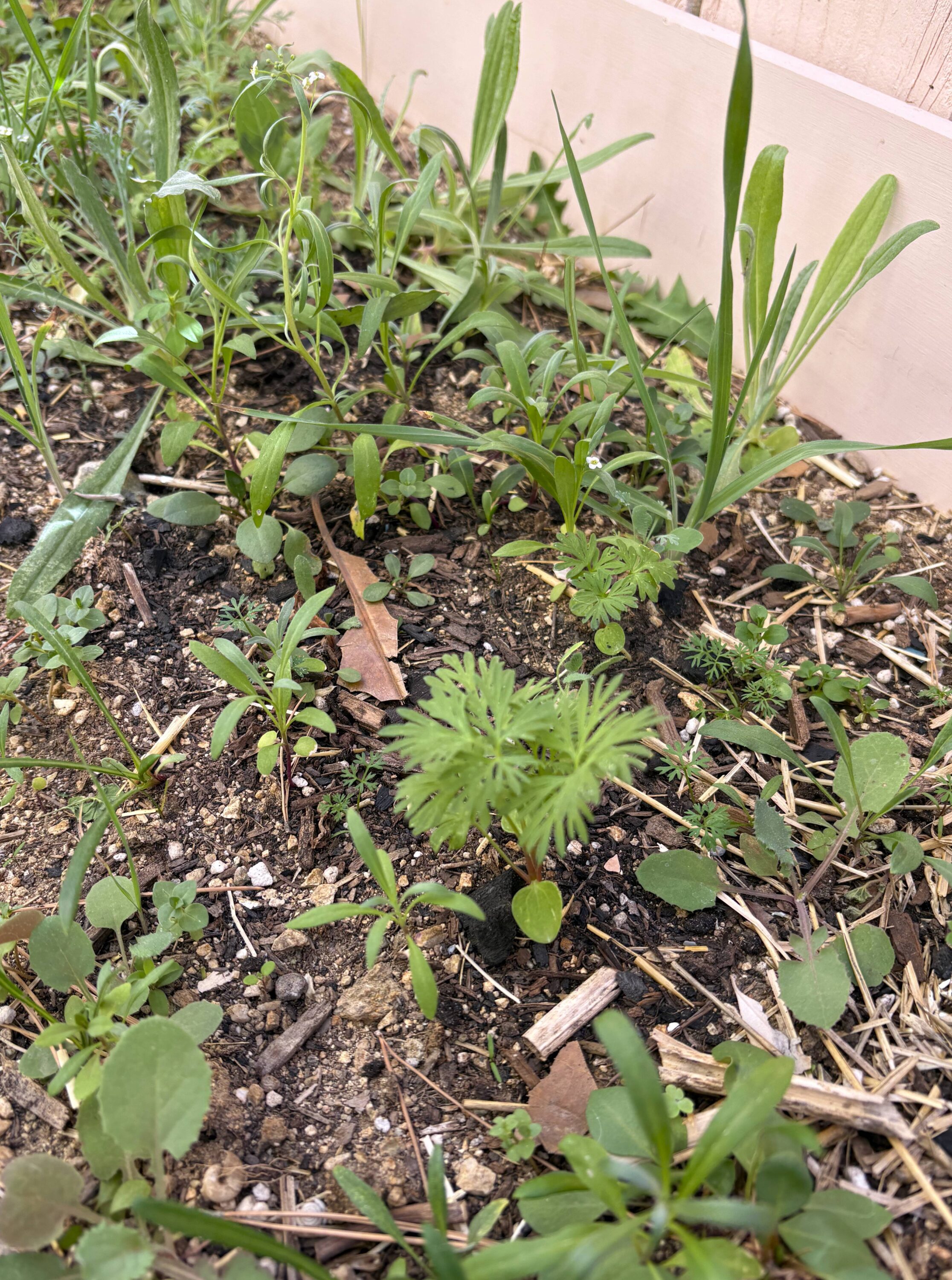 I finished cutting down the tithonia, composted what made sense, and put the rest in the green bin. I pulled back the straw mulch and added a small amount of Trifecta and a 1-inch layer of Black Kow compost before laying down fresh straw. I’ll likely plant onions there later; there’s already a row of radishes in front.