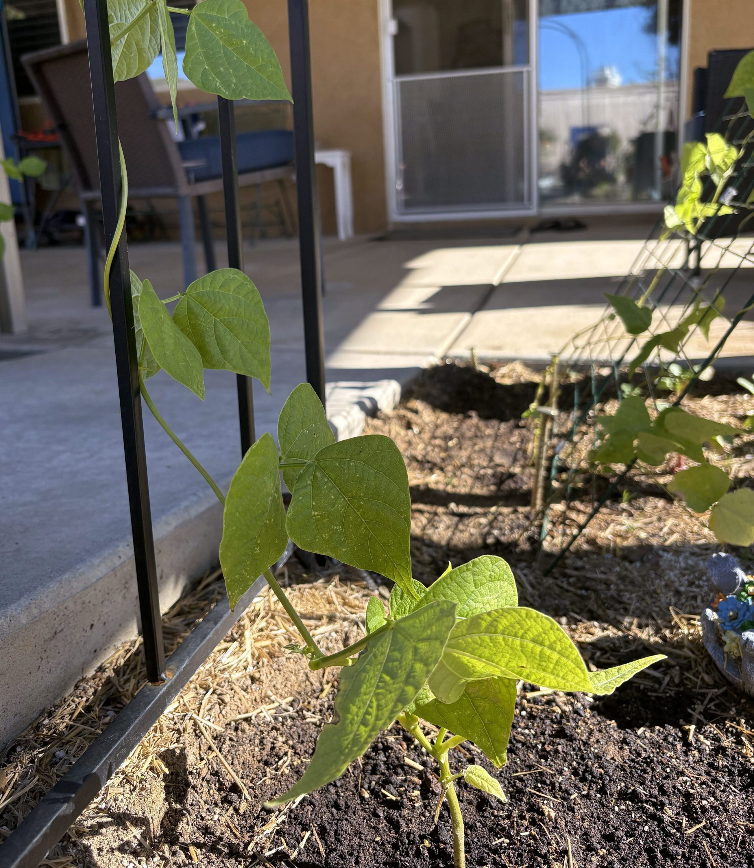 I think these beans took a hit from the heavy rain in November. That patch gets strong runoff from the awning, and the soil there was completely saturated. There’s a visible six-inch-wide strip where small pebbles seem to have settled from the flow.