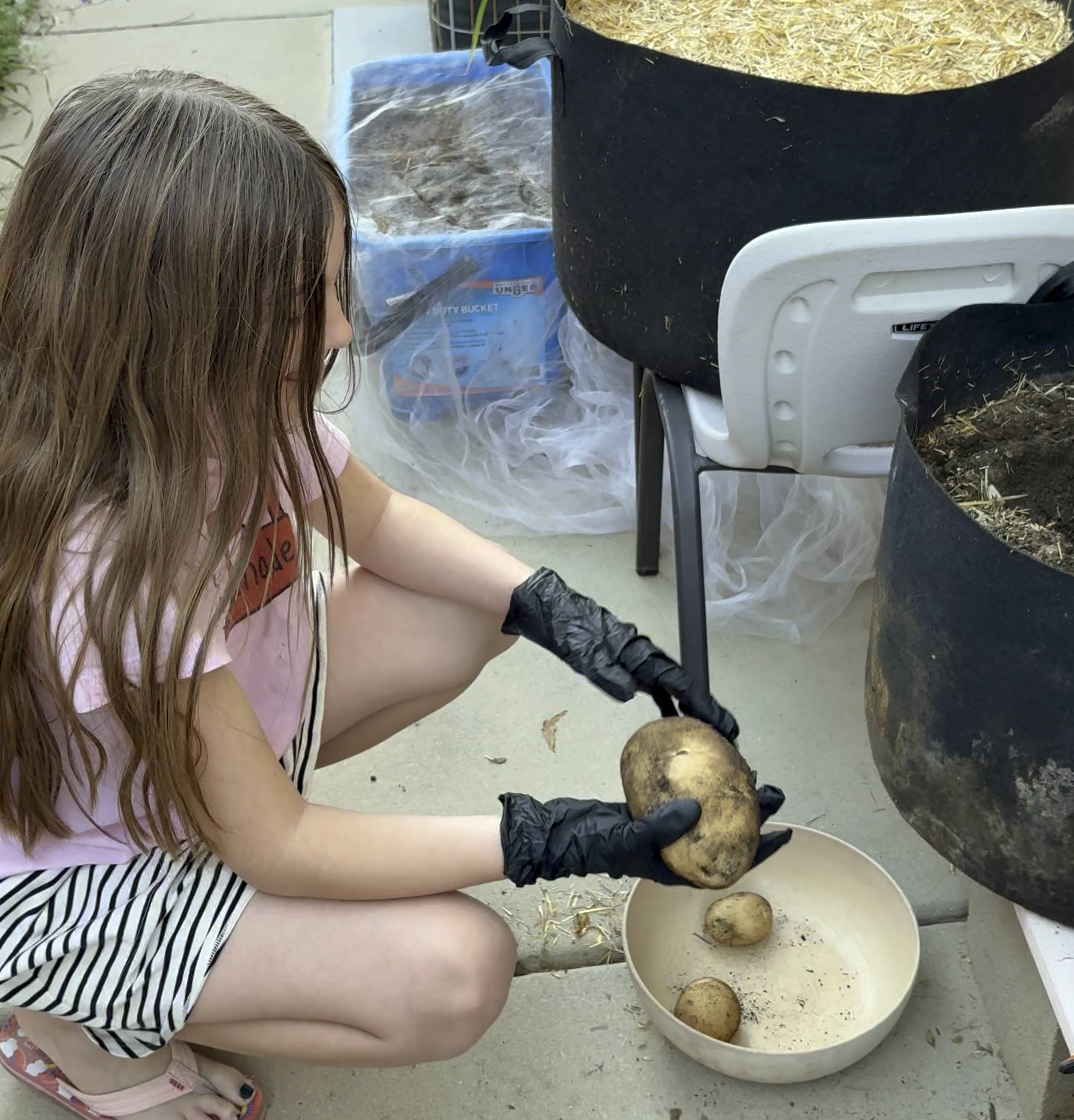 Also, we harvest the final remaining potato grow bag. This is the biggest potato yet!